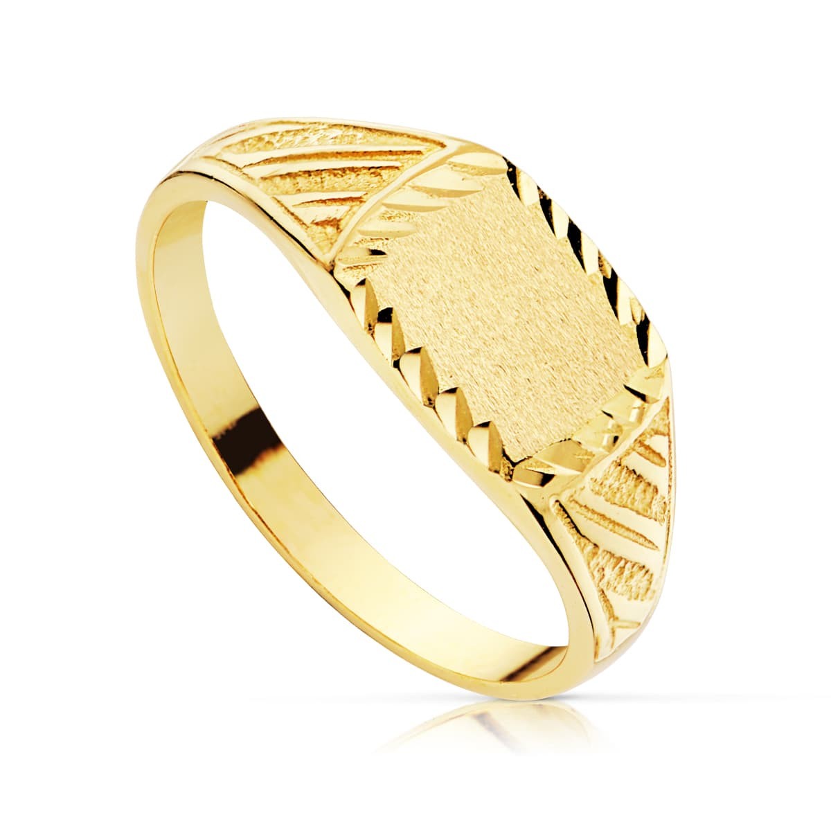 18K SELLO ORO AMARILLO MACIZO TALLADO ZONA GRABADO 7.5 X 6 MM