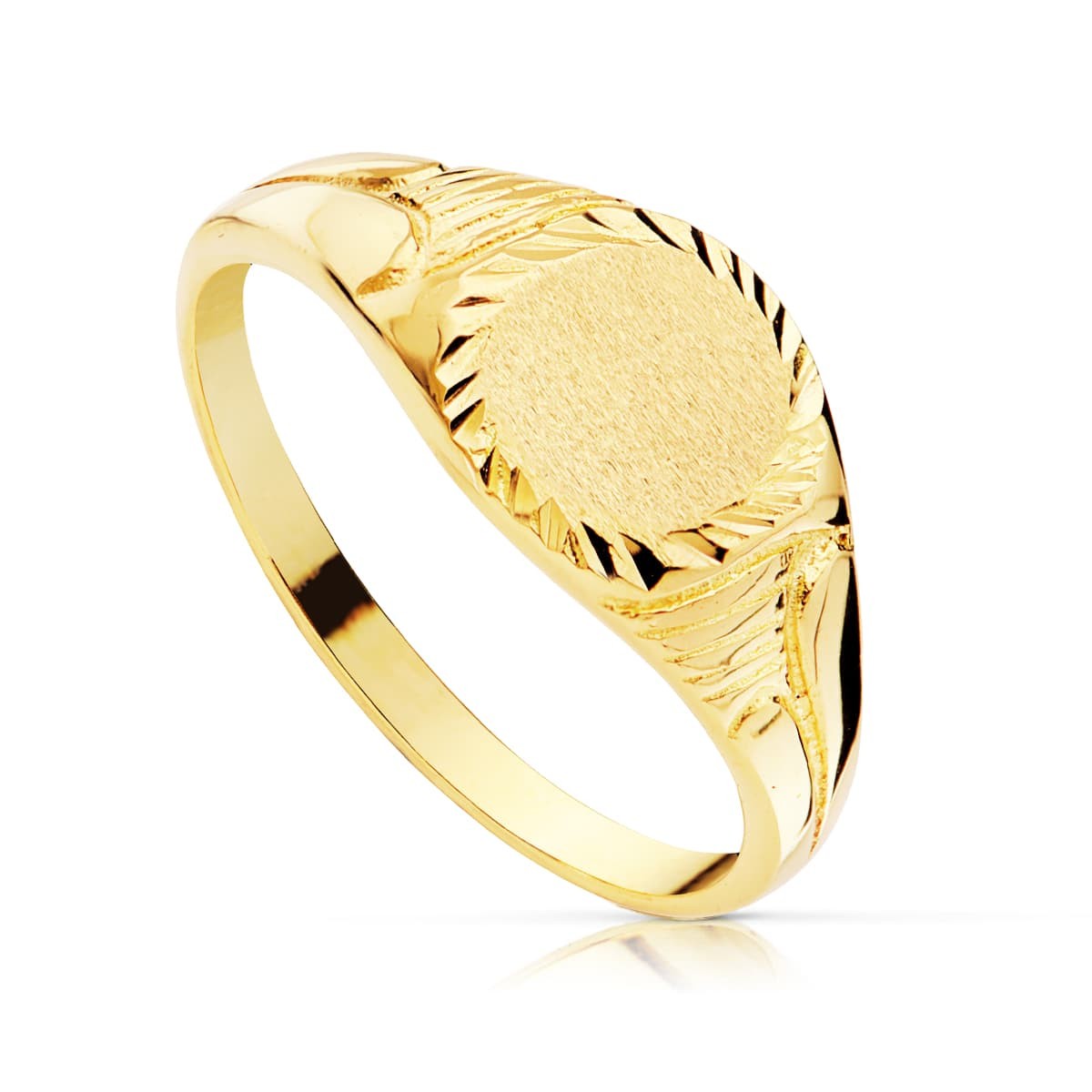 18K SELLO ORO AMARILLO MACIZO TALLADO ZONA GRABADO OVAL 7.5 X 6.5 MM