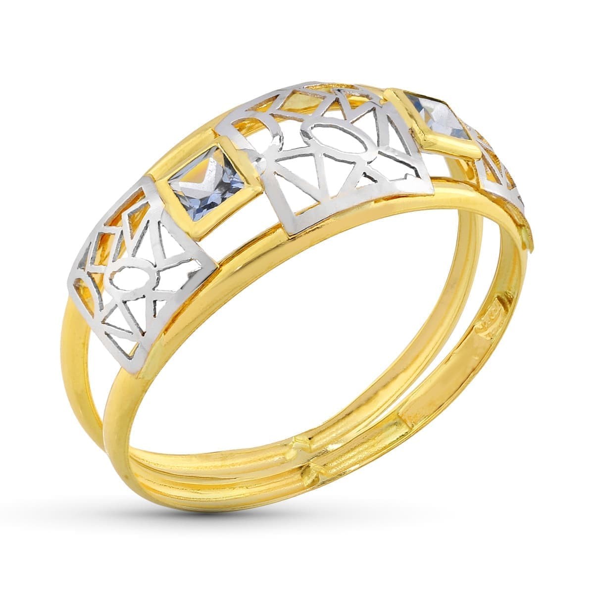 18K SORTIJA OR BICOLOR DOBLE CUERPO CON MOTIVO CALADO Y CIRCONITA CUADRADAS. ANCHO: 8;5 MM