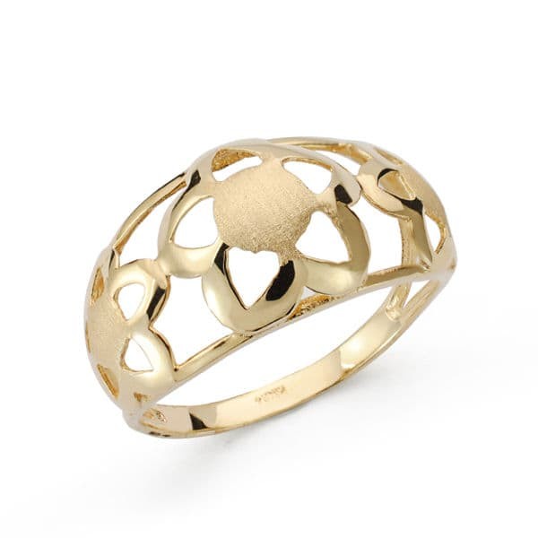 18K SORTIJA ORO AMARILLO CALADO CON FLORES MATE Y BRILLO. ANCHO: 11MM