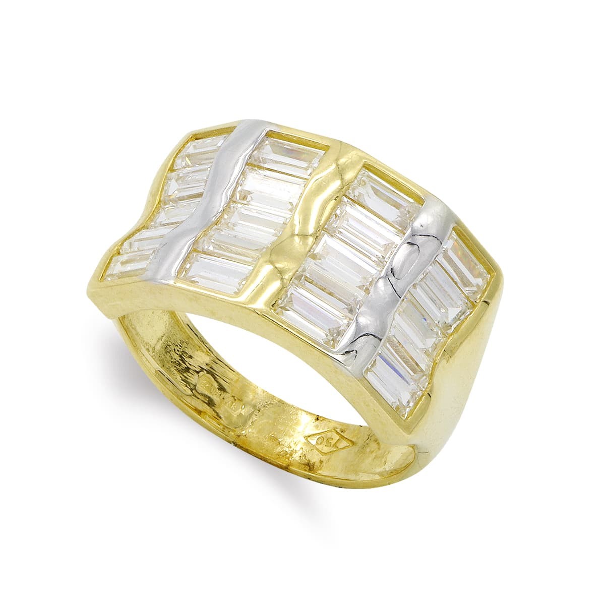 18K SORTIJA ORO BICOLOR BARRITAS Y CIRCONITAS. ANCHO: 12 MM