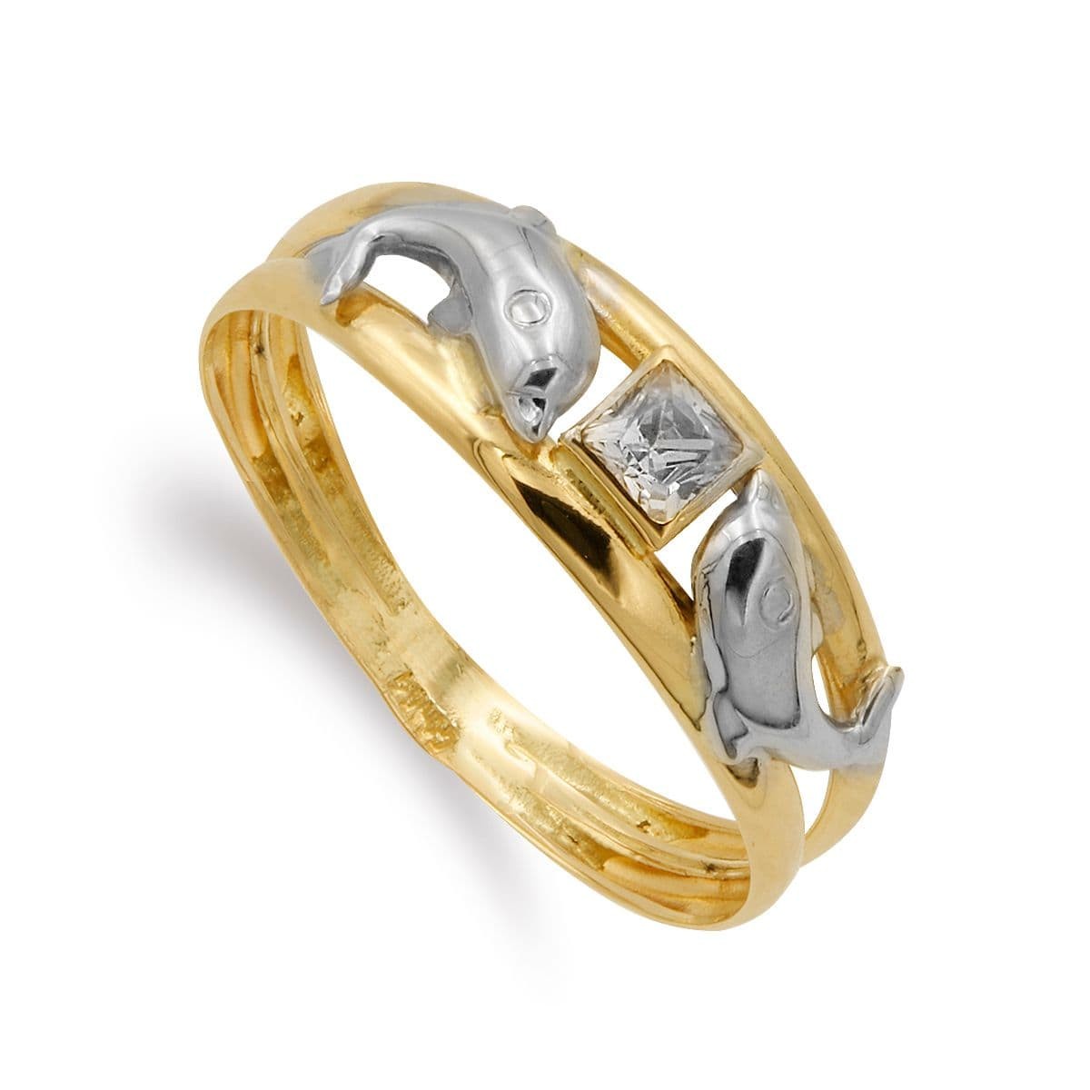 18K SORTIJA ORO BICOLOR DOBLE CUERPO CON DELFINES Y CRICONITAS. ANCHO:...