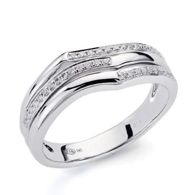 18K SORTIJA ORO BLANCO 38 DIAMANTES TALLA BRILLANTE 0.130 QTS. ANCHO: 7MM