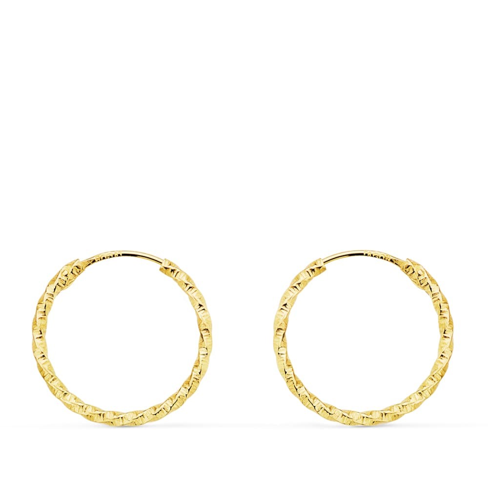 18K AROS ORO AMARILLO HUECOS RETORCIDOS CON TALLADO. 15 X 1,30 MM