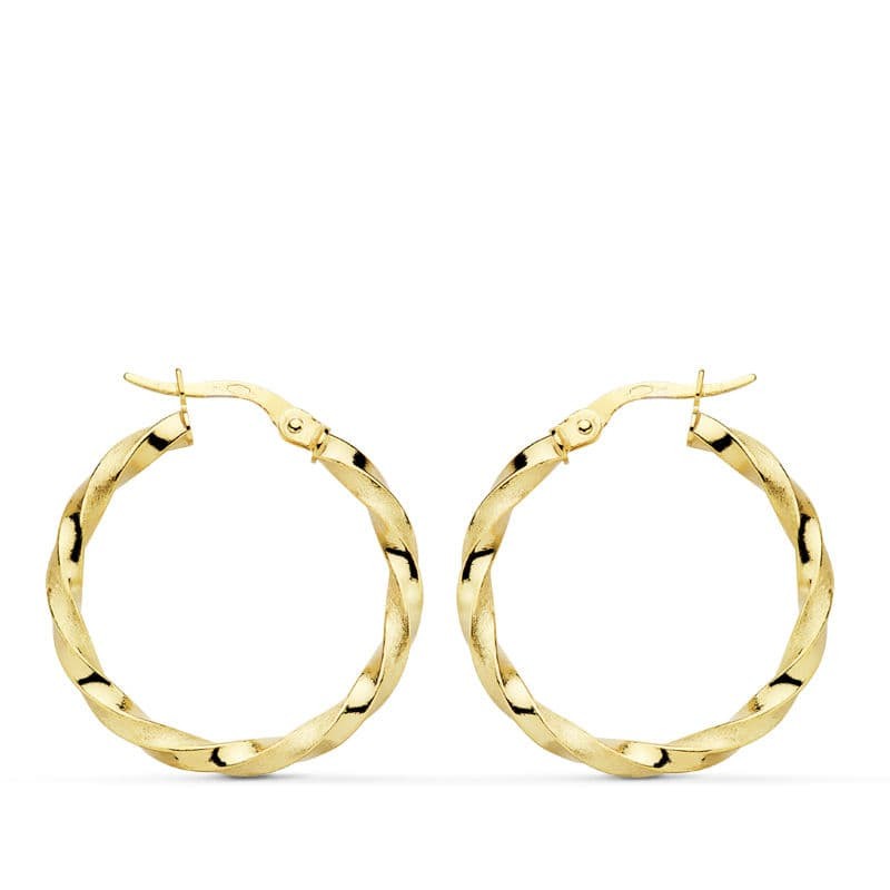 18K AROS ORO AMARILLO HUECOS RETORCIDOS MATE Y BRILLO 25 X 2.5 MM...