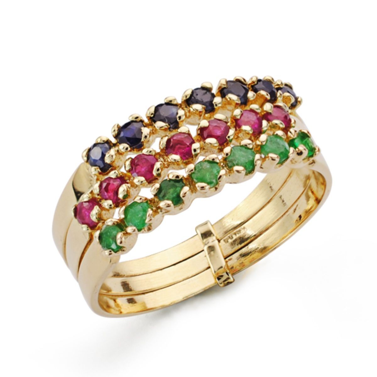 9K SORTIJA ORO AMARILLO 3 AROS CON ZAFIRO-RUBI-ESMERALDA