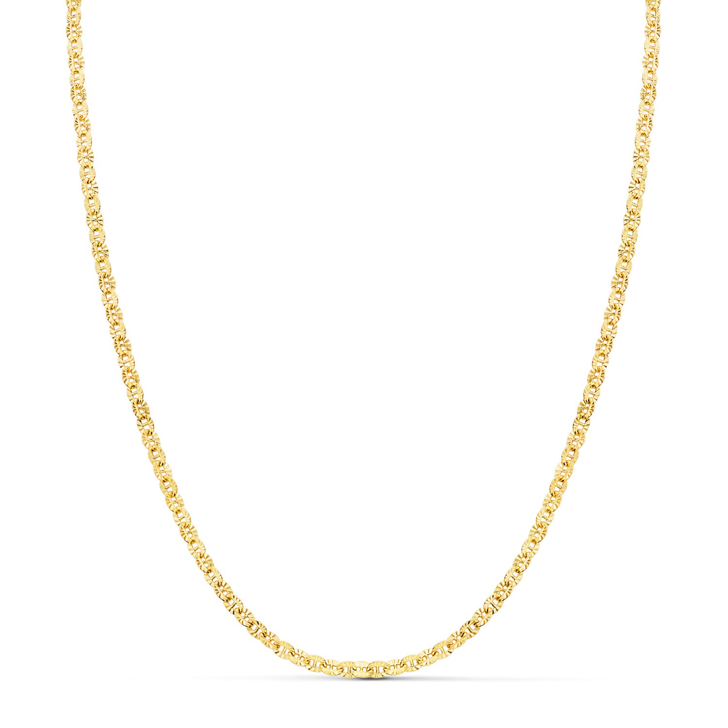 18K CADENA ORO AMARILLO FORZADA HUECA ESLABON TALLADO LARGO 40 CM ANCHO 2 MM