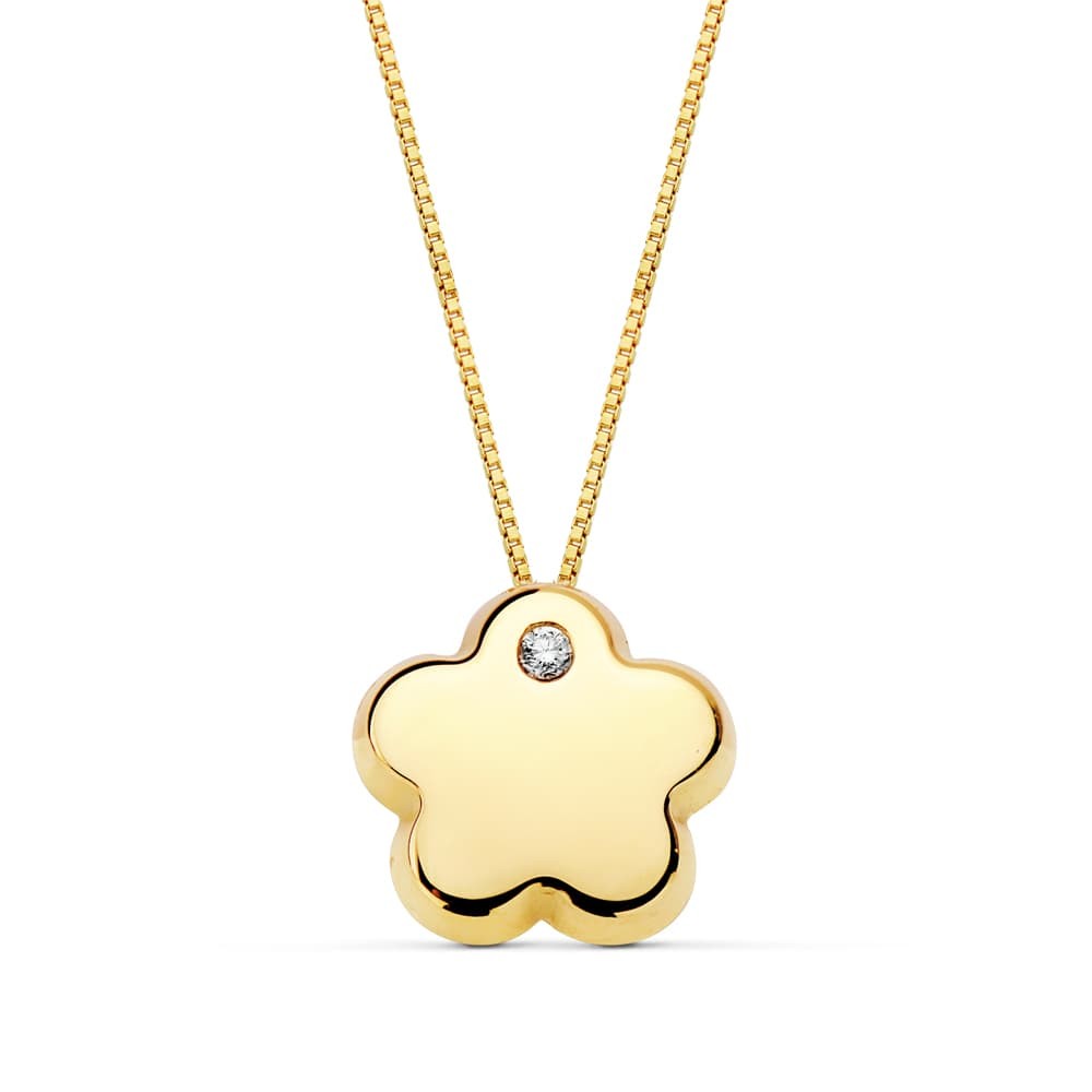 18K COLGANTE FLOR CIRCONITA CADENA 42CM.