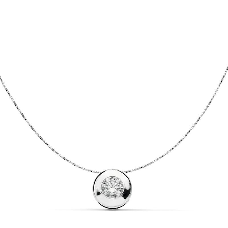 18K COLLAR CON COLGANTE ORO BLANCO 8.5 MM CON CIRCONITA Y CADENA 42 CM