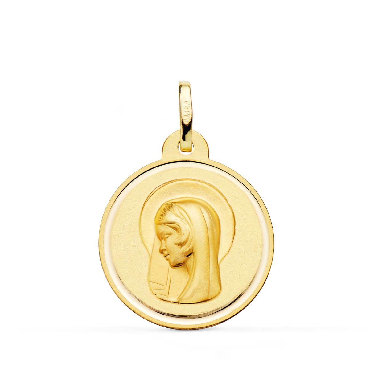 18K MEDALLA VIRGEN MARIA ( REGINA CAELORUM ) BISEL 22 MM