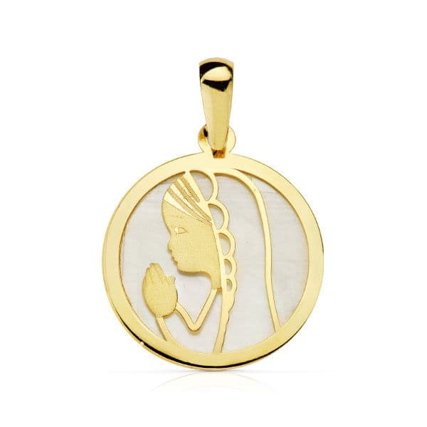 18K MEDALLA VIRGEN NIÑA NACAR REDONDA 17MM.