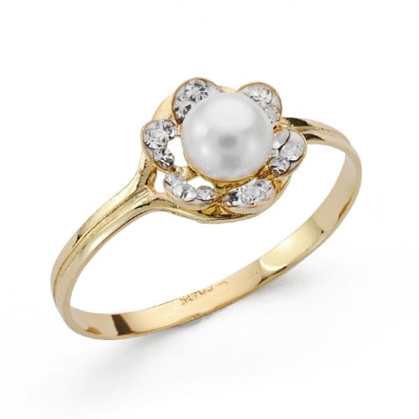 18K SORTIJA FLOR Y CIRCONITAS 8 X 8 MM.