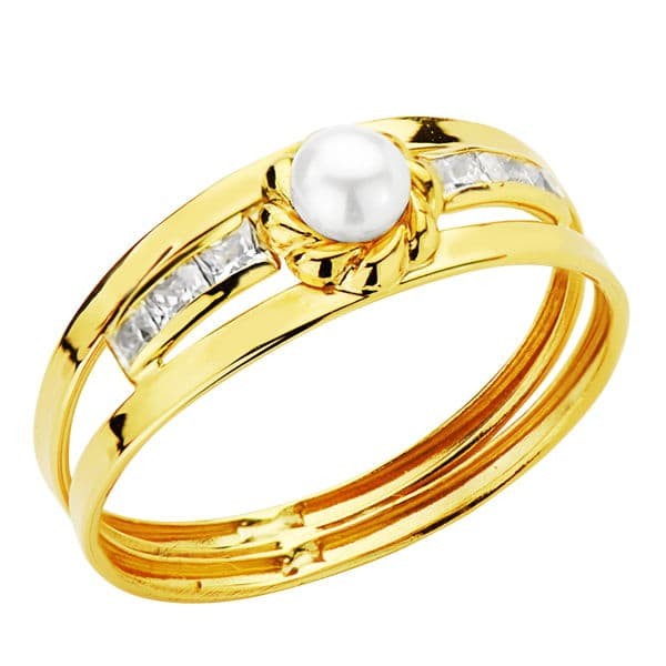 18K SORTIJA ORO AMARILLO CIRCONITAS Y PERLA 3 MM.