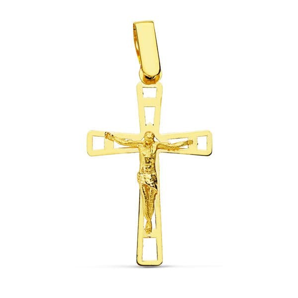 18K CRUZ CON CRISTO CALADA. 26 X 16 MM.
