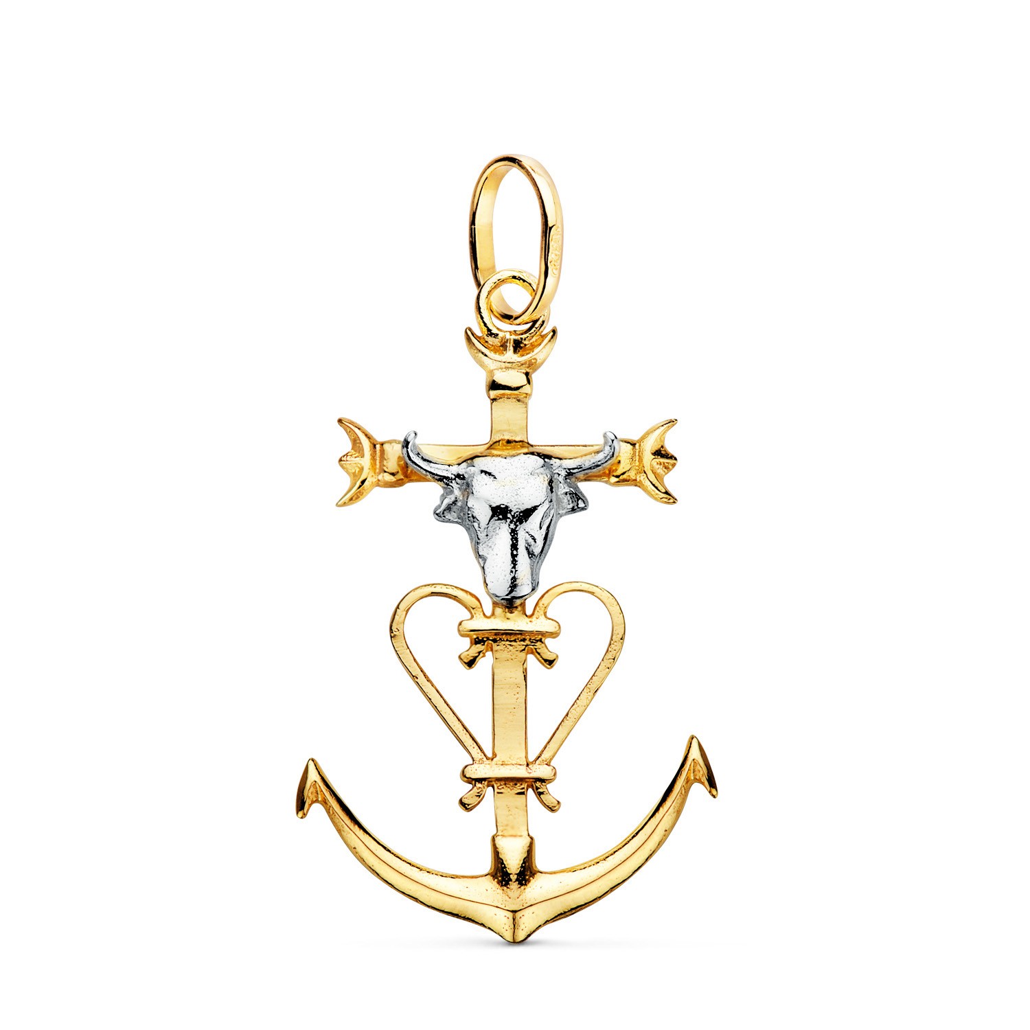 18K CRUZ DE LA CAMARGA ORO BICOLOR CON CABEZA DE TORO. 32 X 20 MM