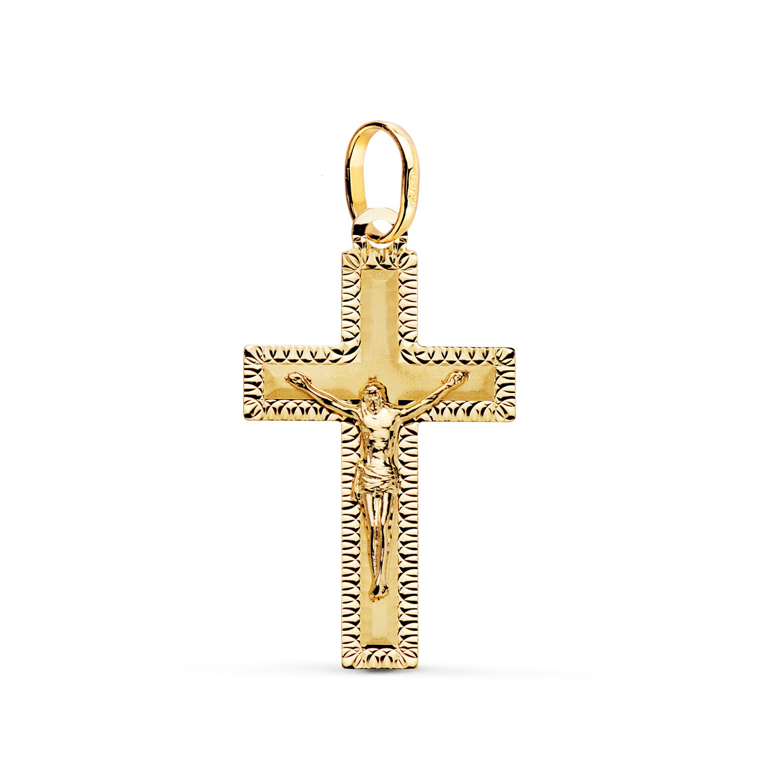 18K CRUZ ORO AMARILLO CON CRISTO TALLADA 27 X 16 MM