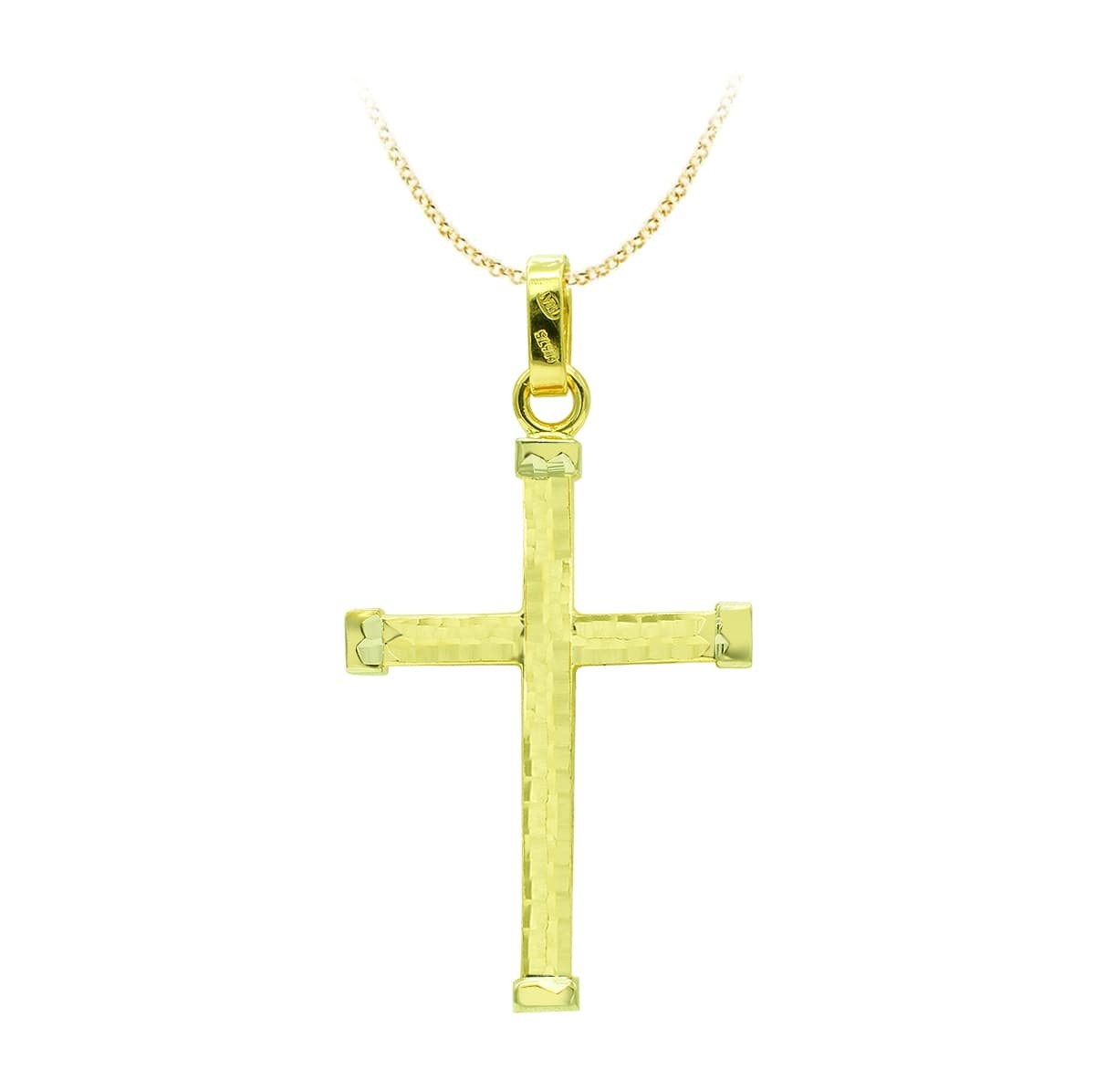 18K CRUZ ORO AMARILLO HUECA BICOLOR 39 X 24 MM