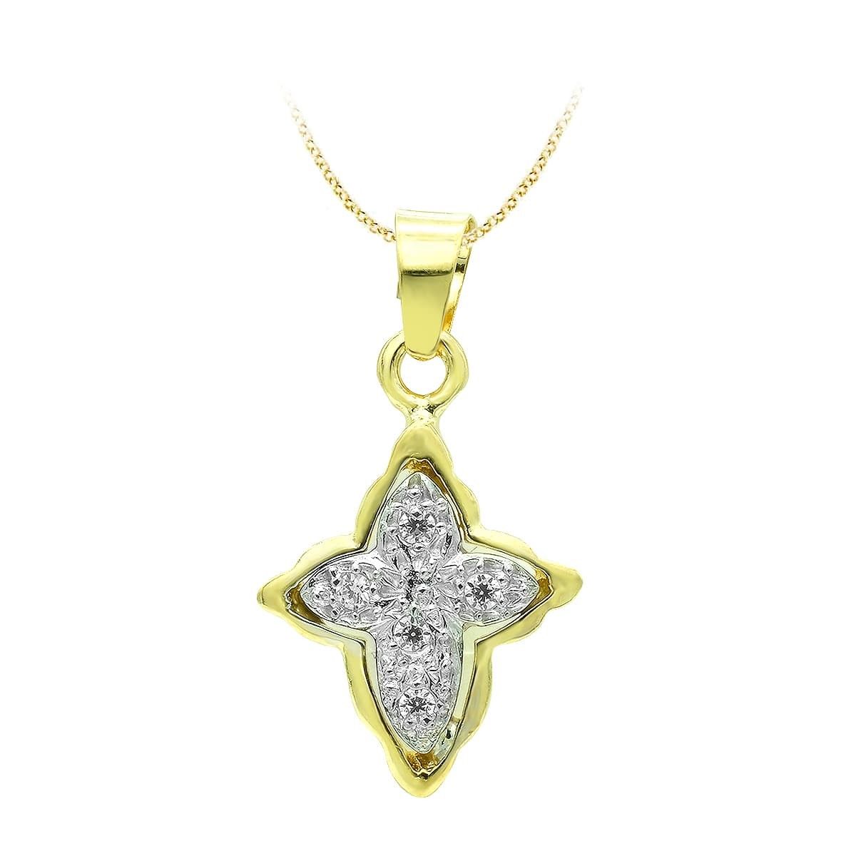 18K CRUZ ORO BICOLOR CIRCONITAS. 16 X 11 MM.