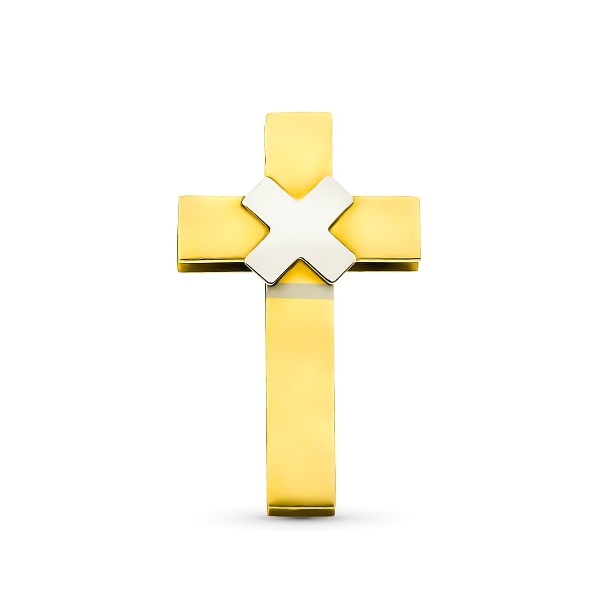 18K CRUZ ORO BICOLOR HUECA MATE Y BRILLO 21 X 13MM.