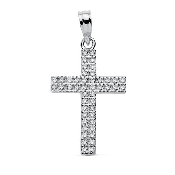 18K CRUZ ORO BLANCO CIRCONITAS. 24 X 15 MM.