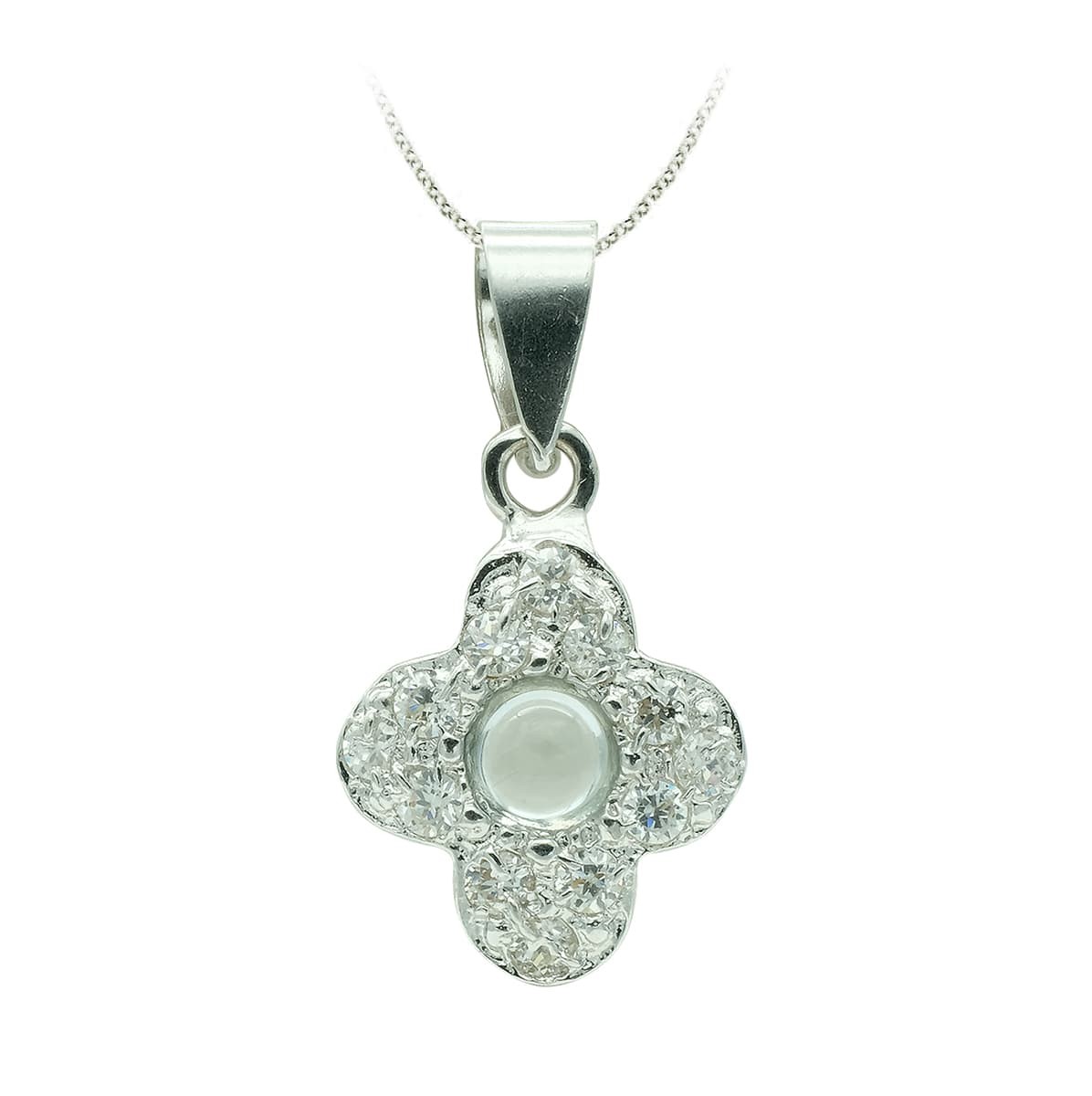 18K CRUZ ORO BLANCO CON CIRCONITAS. 14 X 10 MM.