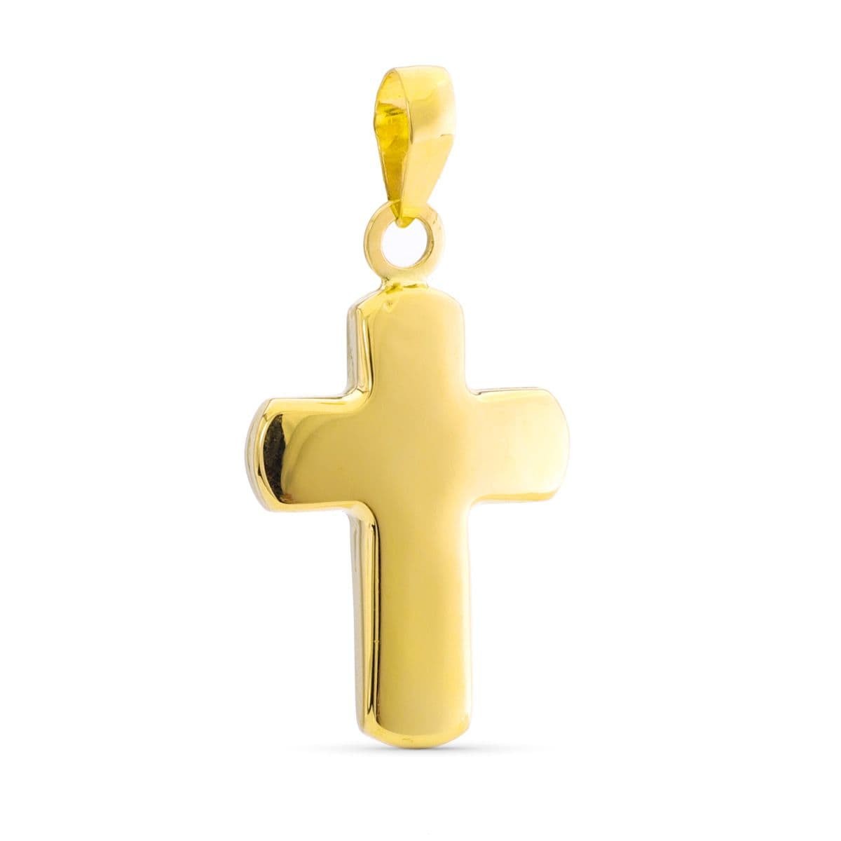 9K CRUZ ORO AMARILLO HUECA EN BRILLO. MEDIDA: 17X12 MM. ALTO: 2 MM