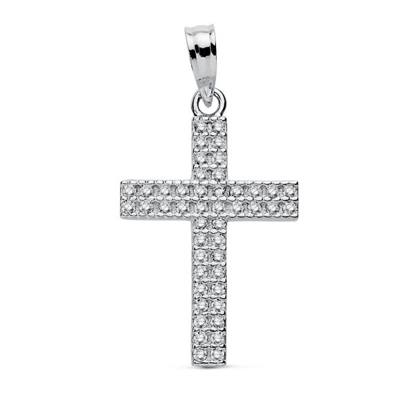 CRUZ ORO BLANCO 9 KTES CIRCONITAS. 19 X 15 MM.