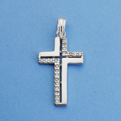 CRUZ ORO BLANCO 9 KTES CIRCONITAS 25 X 14MM.
