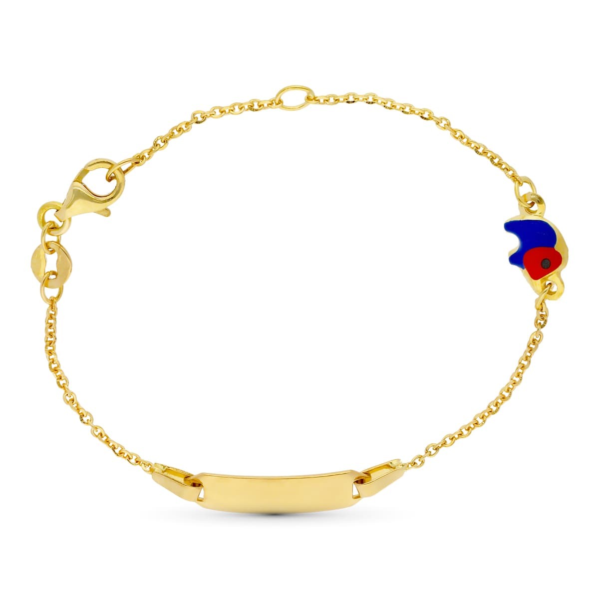 18K ESCLAVA ORO AMARILLO ELEFANTE ESMALTE 16 CM