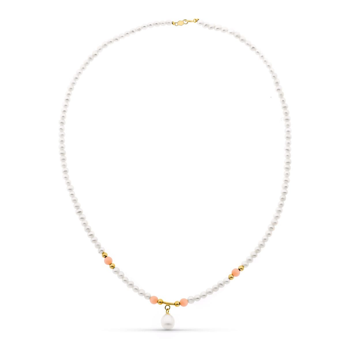 18K COLLAR ORO AMARILLO PERLA CONCHA NATURAL Y PERLAS ROSA