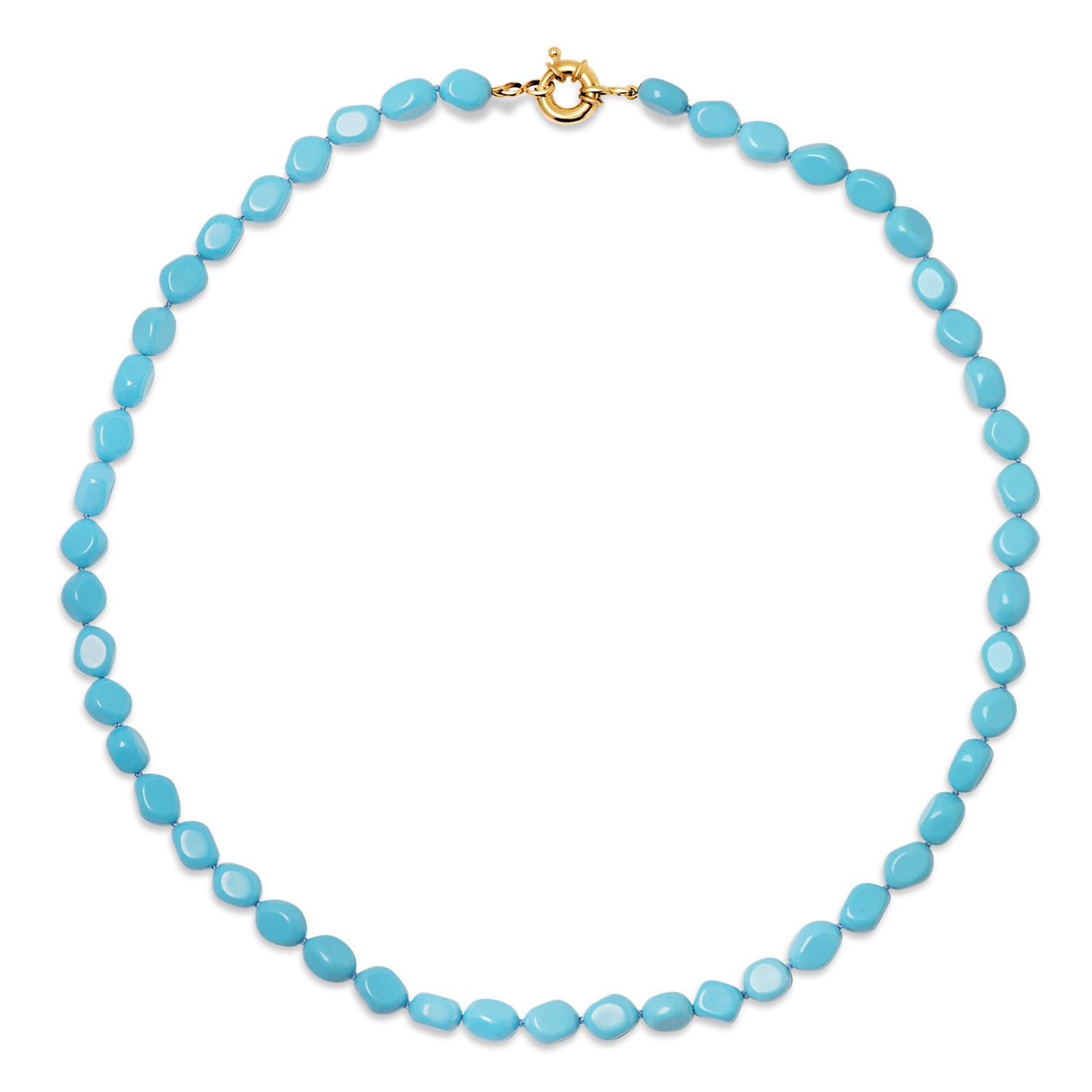 18K COLLAR TURQUESAS LARGO: 45 CM CIERRE DE TIMON 10MM ORO AMARILLO