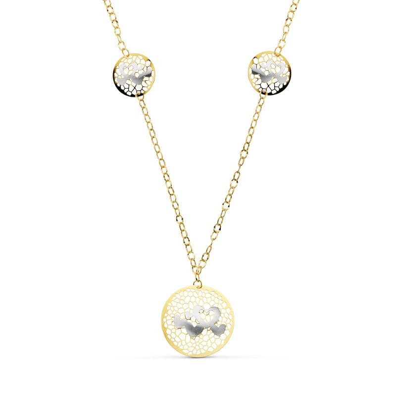 18K GARGANTILLA BICOLOR CORAZONES 45CM