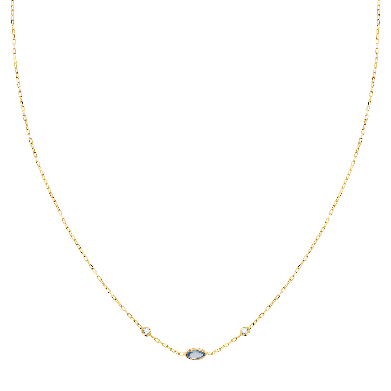 18K GARGANTILLA ORO AMARILLO COLGANTE AGUAMARINA 5X3MM CADENA FORZADA 42 CM