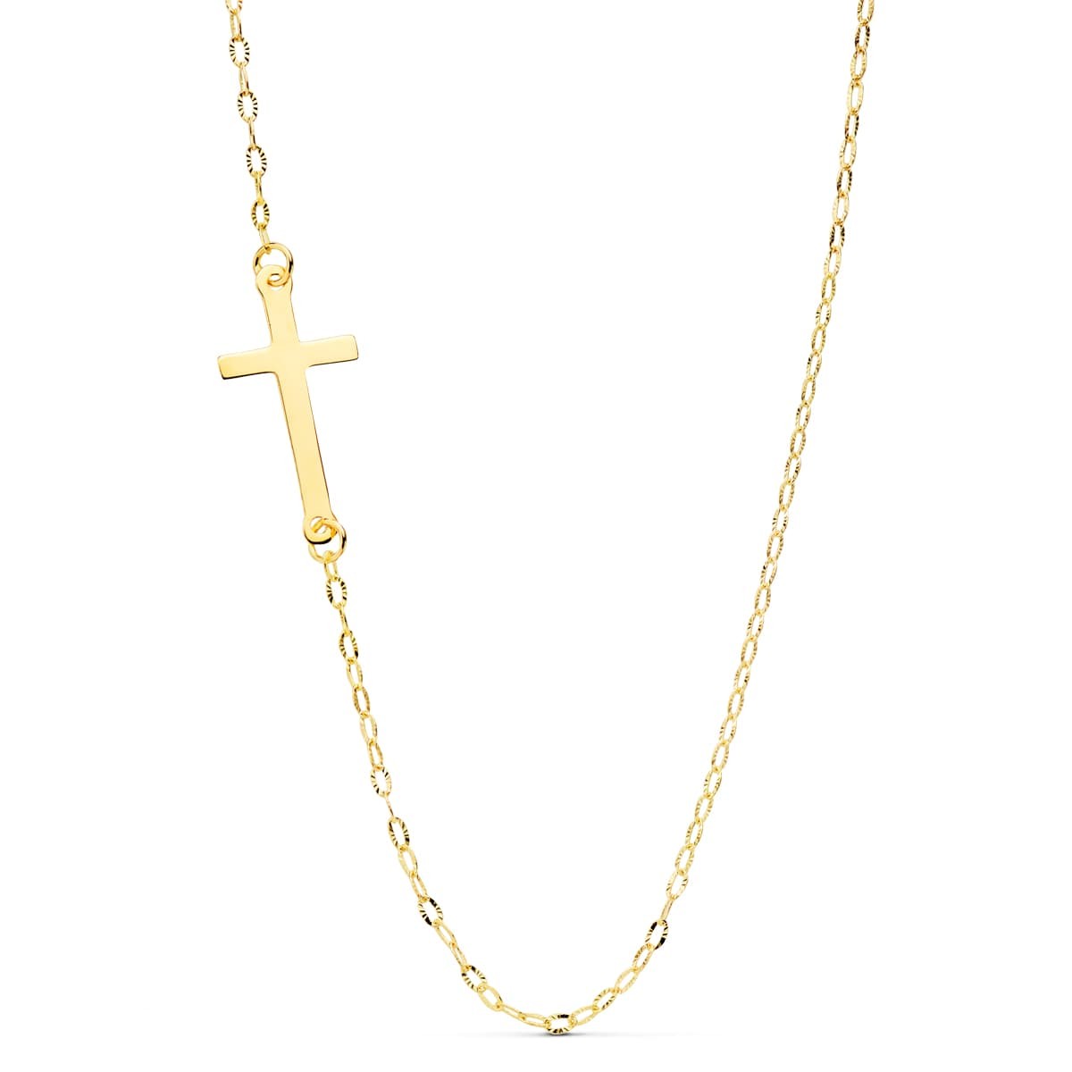 18K GARGANTILLA ORO AMARILLO CRUZ 17 X 8 MM CADENA FORZADA 42 CM