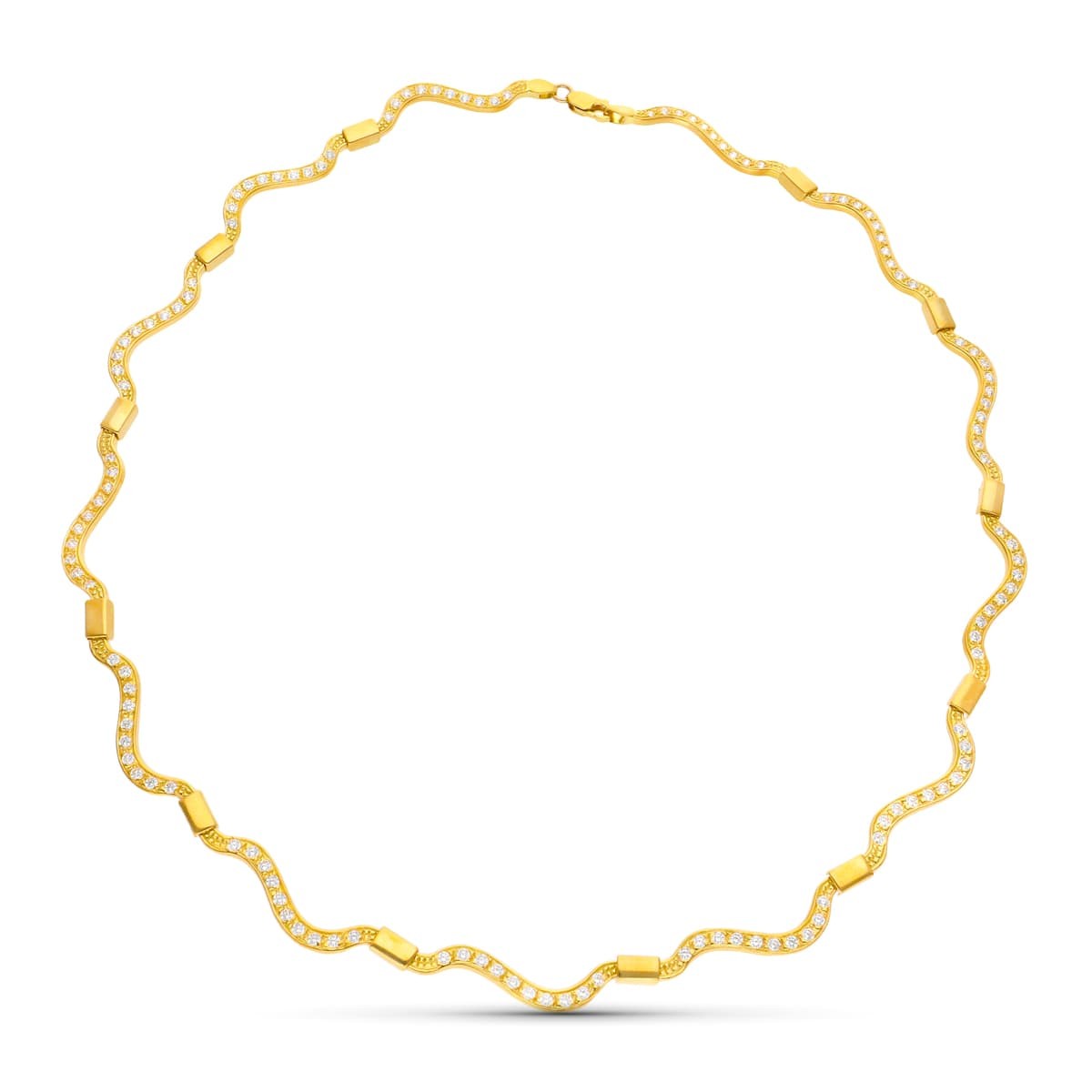18K GARGANTILLA ORO AMARILLO ONDAS CON CIRCONITAS