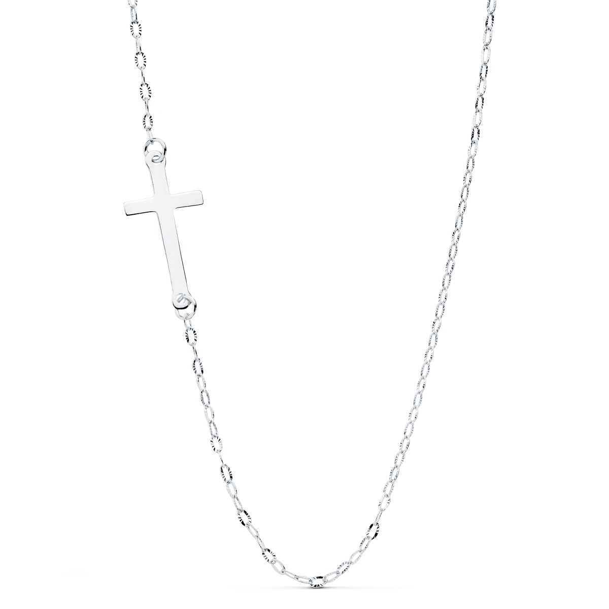 18K GARGANTILLA ORO BLANCO CRUZ 17 X 8 MM CADENA FORZADA 42 CM