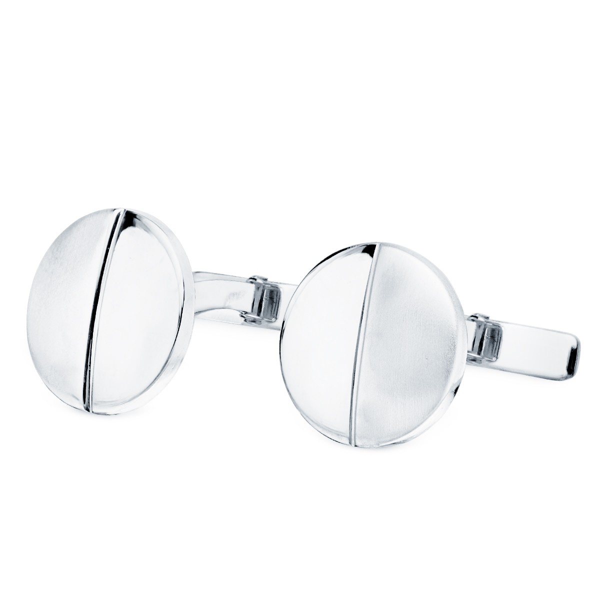 18K GEMELOS ORO BLANCO REDONDOS MATE Y BRILLO 15 MM CIERRE RÍGIDO OSCILANTE