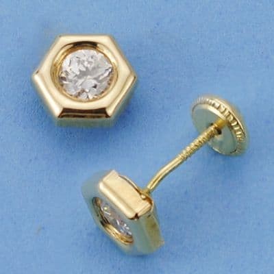 18K PENDIENTES ORO AMARILLO HEXÁGONO. 7 X 6 MM.