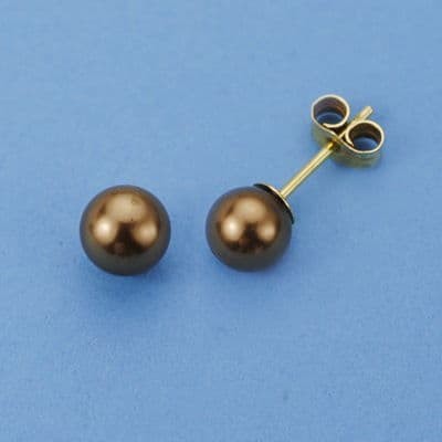 18K PENDIENTES ORO AMARILLO PERLA CHOCOLATE 6 MM.