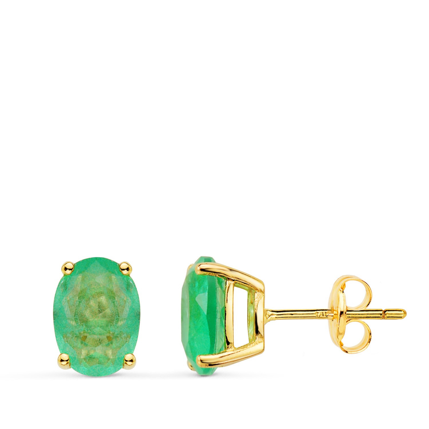 18K PEDIENTES ORO AMARILLO GARRAS PIEDRA CUARZO VERDE 8 X 6 MM CIERRE PRESION