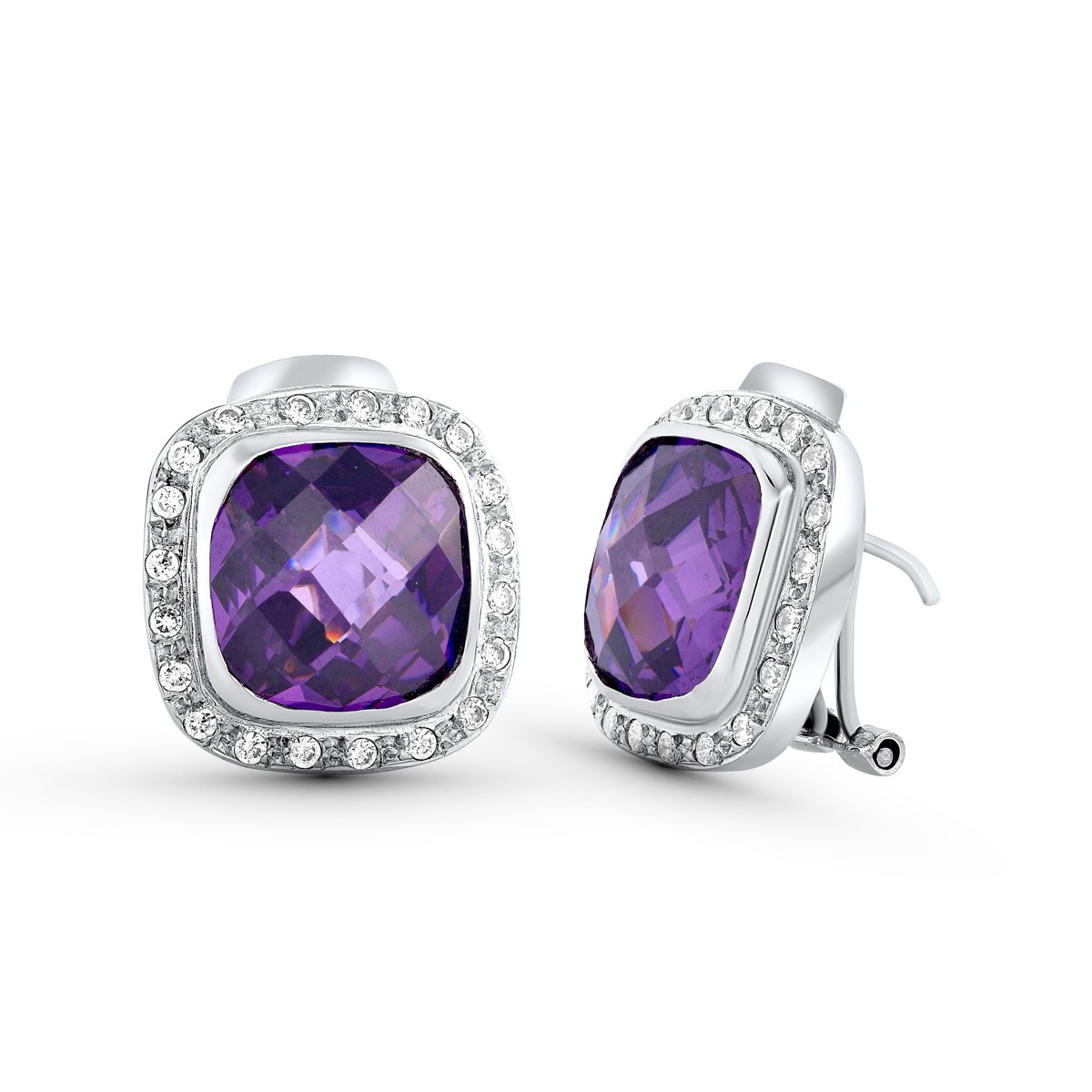 18K PENDIENTES AMATISTA 12MM Y CIRCONITAS CIERRE OMEGA
