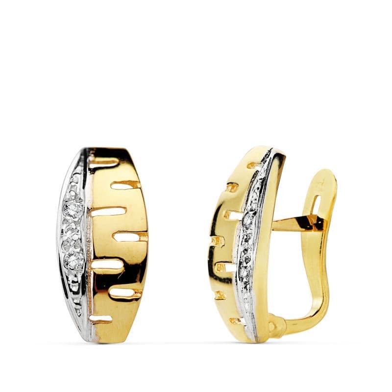 18K PENDIENTES BICOLOR CIRCONITAS. 13 X 6 MM