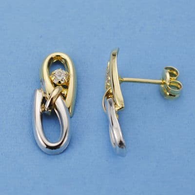 18K PENDIENTES BICOLOR CIRCONITAS. 17 X 6 MM