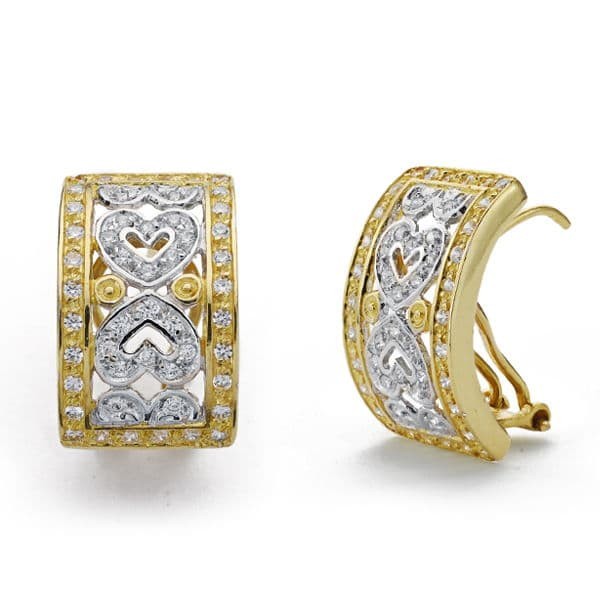 18K PENDIENTES BICOLOR CIRCONITAS OMEGA. 20X12 MM