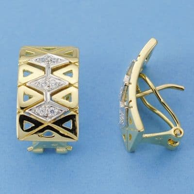 18K PENDIENTES BICOLOR ROMBOS. 19 X 10 MM.
