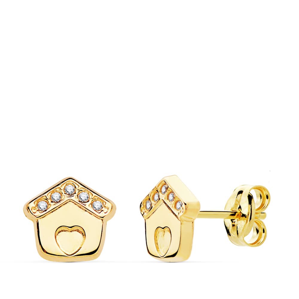 18K PENDIENTES CASITA CIRCONITAS. 7 X 7 MM