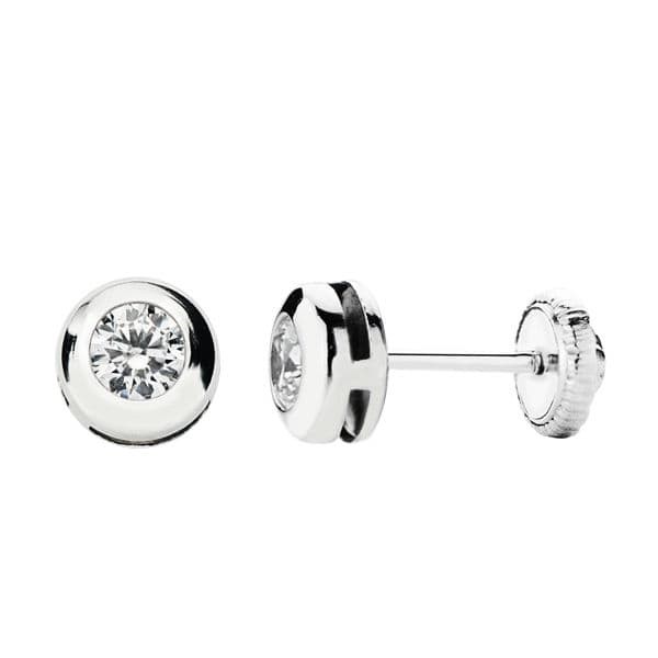 18K PENDIENTES CHATON CIRCONITA ORO BLANCO 5 MM