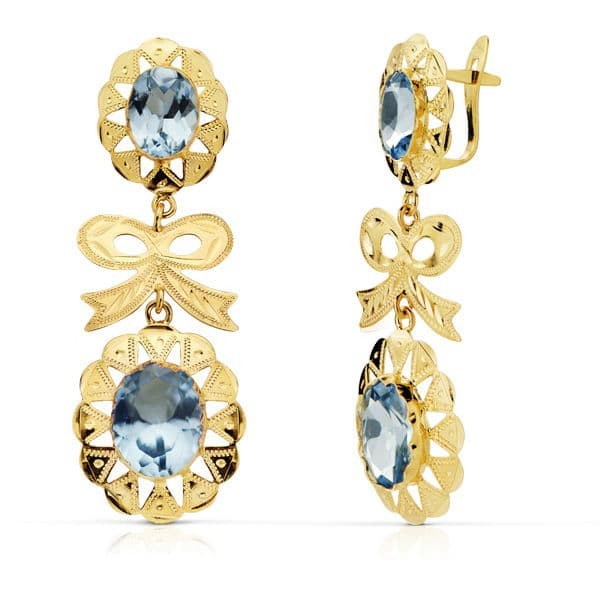 18K PENDIENTES CUBANA LAZO A.MARINA 43X15MM