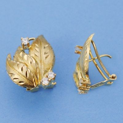 18K PENDIENTES HOJAS LAPIDADAS. 19 X 15 MM.