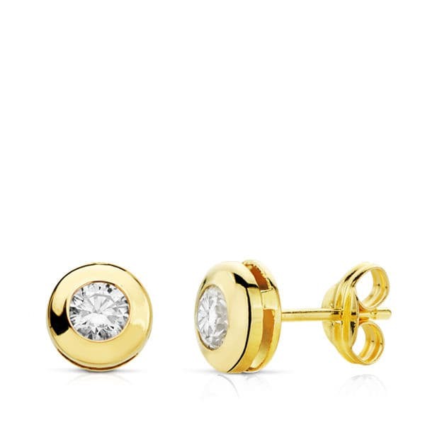 18K PENDIENTES ORO AMARILLO CHATON CIRCONITA 6.5 MM. CIERRE PRESION